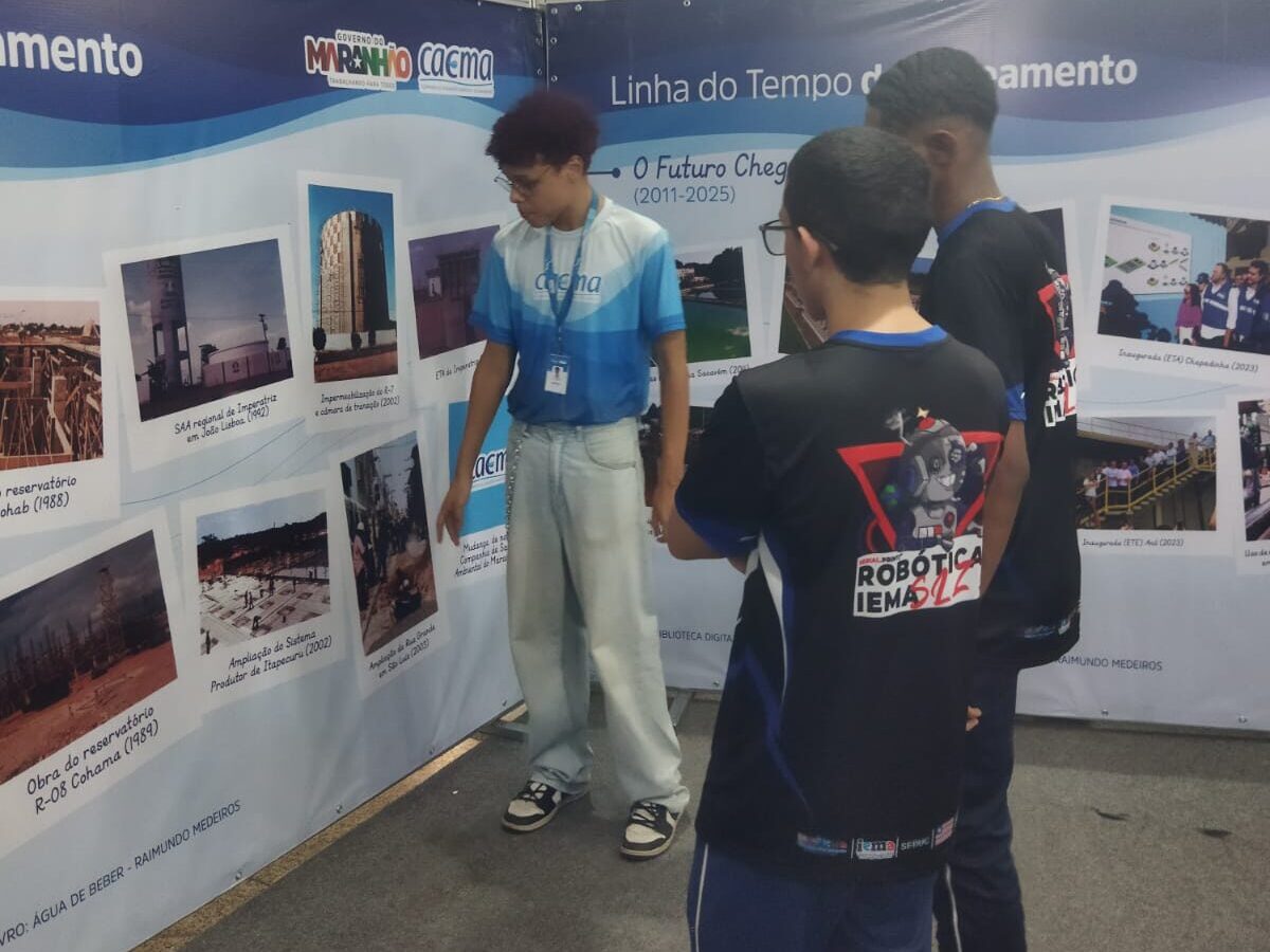 Em ambos os momentos, a equipe da biblioteca apresentou a exposição “Linha do Tempo do Saneamento no Maranhão”, ressaltando marcos históricos, avanços tecnológicos e ações significativas desempenhadas pela CAEMA na missão de garantir saneamento de qualidade à população maranhense.