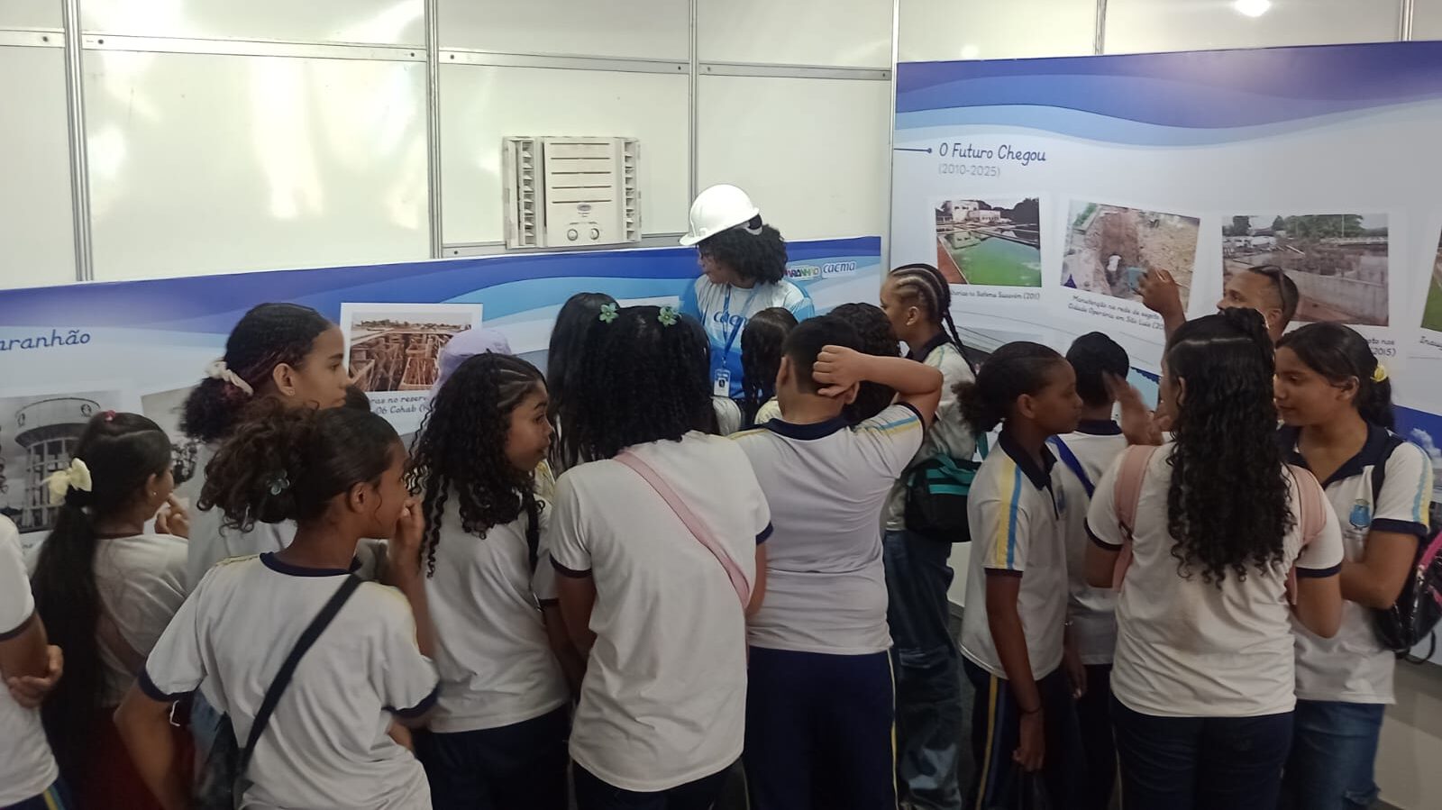 Durante a Expoema, o estande recebeu visitantes de diversas faixas etárias e escolaridades, desde o público infantojuvenil, famílias, estudantes e professores universitários interessados em conhecer os aspectos históricos do saneamento, sua importância para a qualidade de vida e a saúde pública, assim como a atuação da CAEMA nestes âmbitos.